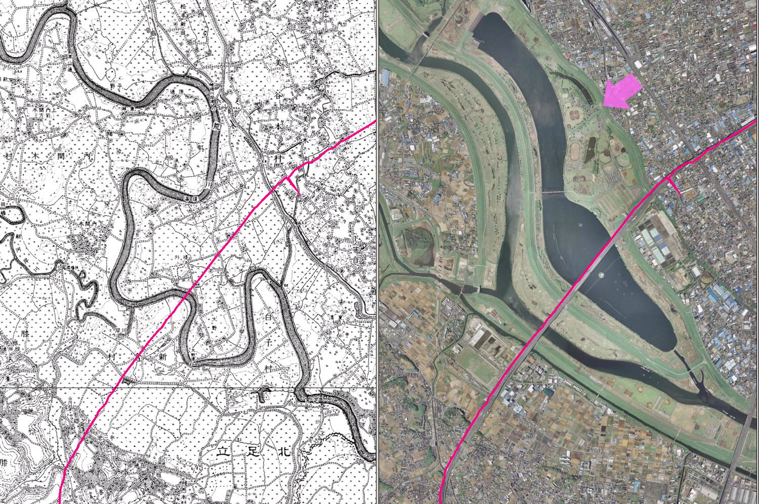 | 新河岸川と荒川。新河岸川は下流の岩淵水門からは隅田川となります。 |